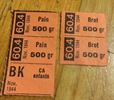 In vielen Familien gab es fast keine Butter, höchstens mal an einem Sonntag. Ein Vater war während der Kriegsjahre immer besorgt, dass seine Töchter wenigstens etwas Zucker auf ihre Brotscheiben streuen konnten. Frau Lammer hat der Erzählrunde alte Lebensmittelmarken mitgebraucht. Zur Zeit der Lebensmittelrationierung konnten diese Marken auf der Gemeindekanzlei bezogen werden.