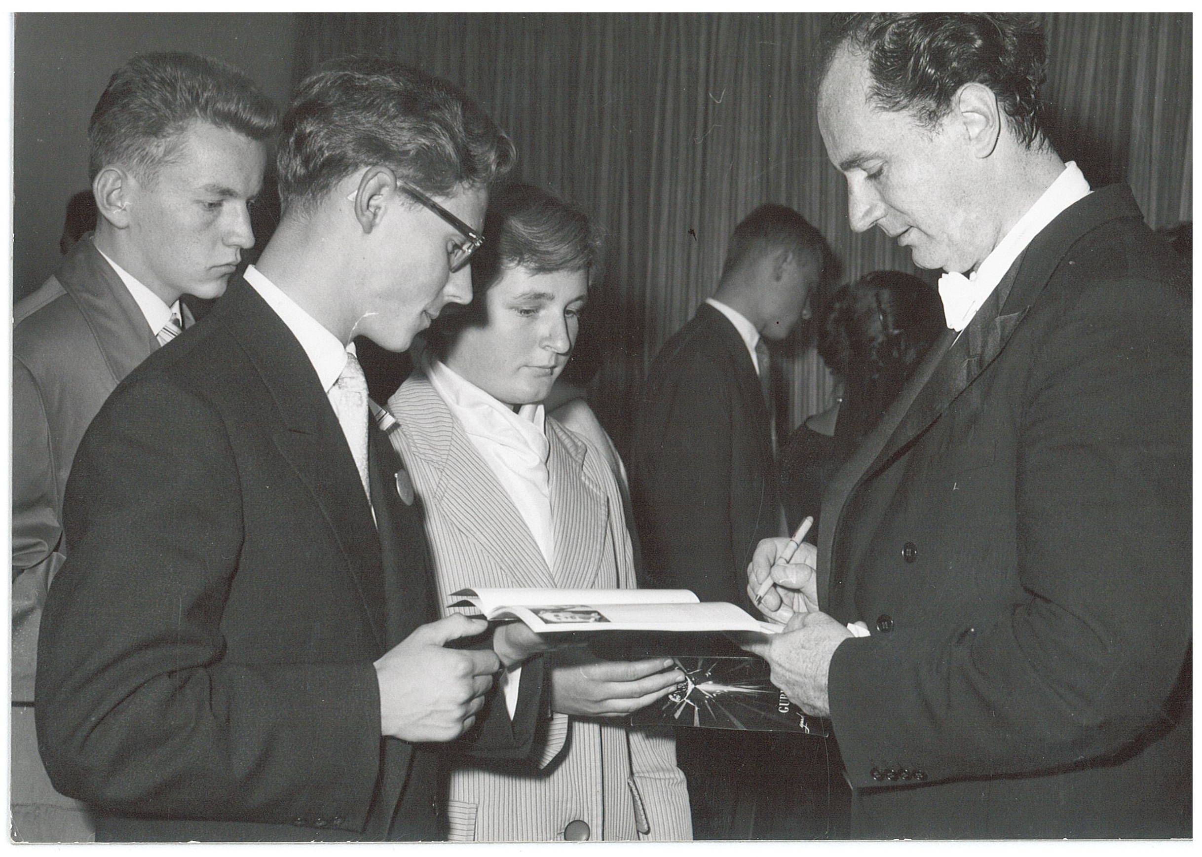 Das undatierte Bild aus dem Archiv des Lucerne Festival zeigt den Dirigenten Rafael Kubelik mit jugendlichen Autogrammjägern. (Copyright Lucerne Festival)