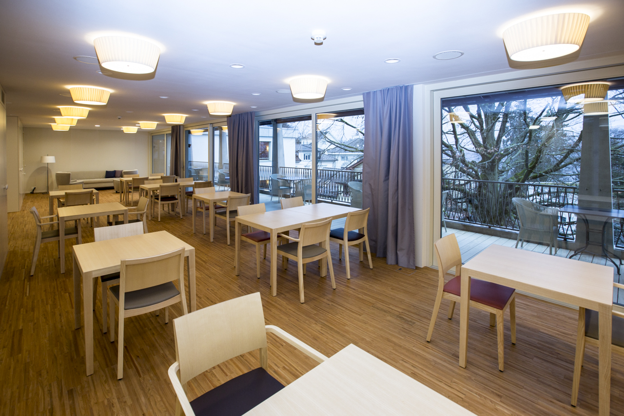 Was auffällt: Zu den zwanzig Zimmern auf jedem der vier Stockwerke gehört ein Gemeinschafstraum zum Verweilen und Essen. „Der Neubau soll Voraussetzungen zum Leben schaffen“, sagte Geschäftsleiter Beat Demarmels. Die Grosszügigkeit hat ihren Preis. Die Hotellerie ohne Pflege (Wohnen, Essen, Wäsche, Reinigung) kostet im Einzelzimmer im Haus Rigi 174 Franken pro Tag. Dieser Standardpreis kann sich je nach Grösse und Ausstattung des Zimmers verändern. Viva Luzern kennt in den Betagtenzentren fünf Preiskategorien zwischen 168 und 191 Franken Tagesansatz.