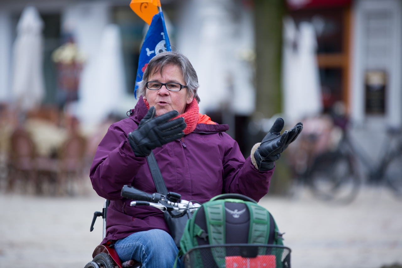 Gudrun hat sich ohne Zögern als Guide angemeldet, als ihr jemand einen Flyer dieses aussergewöhnlichen Projekts in die Hand drückte. "Ich kann damit Hemmschwellen gegenüber Menschen mit Behinderungen abbauen", sagt sie, "auch wir sind Teil unserer Gesellschaft." Nein, es habe keinen Mut gebraucht, sich in der Öffentlichkeit zu exponieren und von den eigenen Schwierigkeiten zu erzählen, sagt sie. "Ich habe keine Berührungsängste." Geholfen habe die eingehende Schulung der Guides, insbesondere mit einer Sozial- und Theaterpädagogin. "Wir wissen, wie auftreten, können unsere persönlichen Erfahrungen einbringen", sagt Gudrun. Sie mache sich nützlich, lerne neue Menschen kennen. Diese Stadtführungen, so Gudrun, "sind für mich Seelenbalsam."