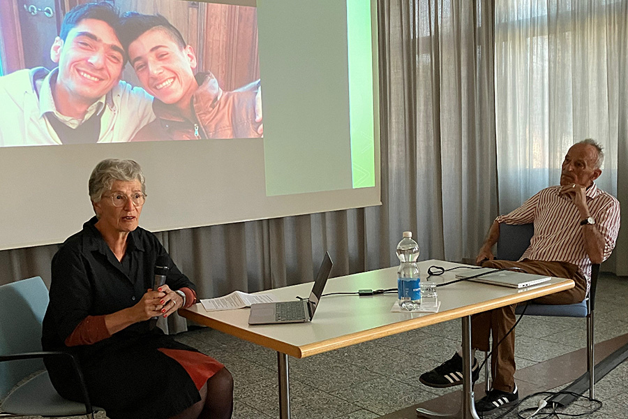 Pia Schmid stellt die im Quartier wohnenden Referenten als offenes, tolerantes Ehepaar vor, das von 2015 bis 2020 ein afghanisches Brüderpaar bei sich aufgenommen hatte. In Wort und Bild blickten Silvana und Edwin Haag auf die Zeit zurück, die sie viel Arbeit und Kraft gekostet, jedoch auch bereichert hatte.