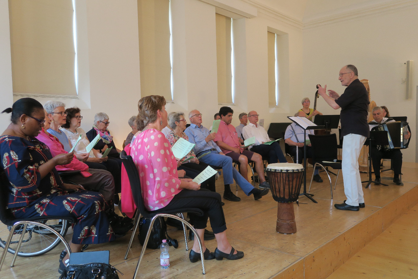Bevor der Chor das letzte Lied wiederholte, dankte Rudolf Zemp den einzelnen Sängerinnen und Sängern und den Instrumentalisten mit einem persönlichen Händedruck. Dies zeigte: Rudolf Zemp ist die Seele des Chors. Letztes Jahr 80 geworden, denkt er nicht ans Aufhören. Wohl ist er froh, mit Joseph Bachmann einen Stellvertreter zu haben. Doch ist seine ansteckende Lust am Musizieren nach wie vor ungebrochen. «Es ist immer wieder eine Freude zu erfahren, welche Entwicklung bei der Arbeit mit dem Chor möglich ist. Wir törnen uns gegenseitig an. Ich habe musikalisch in den letzten 15 Jahren mit dem Aphasiechor nur Positives erlebt. Es ist für mich ein grosses Geschenk.»