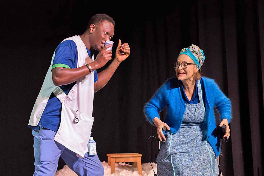 «Chuenägele» ist das neuste Stück einer Reihe von Produktionen von «visch&fogel» der Theaterautorin und Schauspielerin Vreni Achermann und dem Produktionsleiter Hans Troxler. Während der Pandemie setzte sich das Ehepaar vertieft mit unserem Gesellschaftssystem auseinander. Im Zentrum standen zwei unterschiedliche Gruppen, die aufeinander angewiesen sind: Zum einem die ältere Generation, die den Lebensabend oft einsam und isoliert verbringt. Zum andern das Pflegepersonal mit einem grossen Anteil von Menschen aus anderen Kulturen, ohne die das Gesundheitssystem zusammenbrechen würde. «Chuenägele» macht den kulturellen Hintergrund und die Lebenssituation dieser beiden unterschiedlichen Gruppen sichtbar und zeigt: Es reicht nicht, den Patientinnen und Patienten die Medikamente zu verabreichen. Wesentlich ist, mit ihnen in Beziehung zu treten. Dafür braucht es Zeit, die oft fehlt. Vreni Achermann erklärt: «Die Begegnung mit dem Fremden schärft den Blick auf den eigenen kulturell bedingten Umgang mit den alten Menschen. Gleichzeitig wollten wir People of Color eine Möglichkeit zur Identifikation bieten und Vorurteile aufbrechen.»