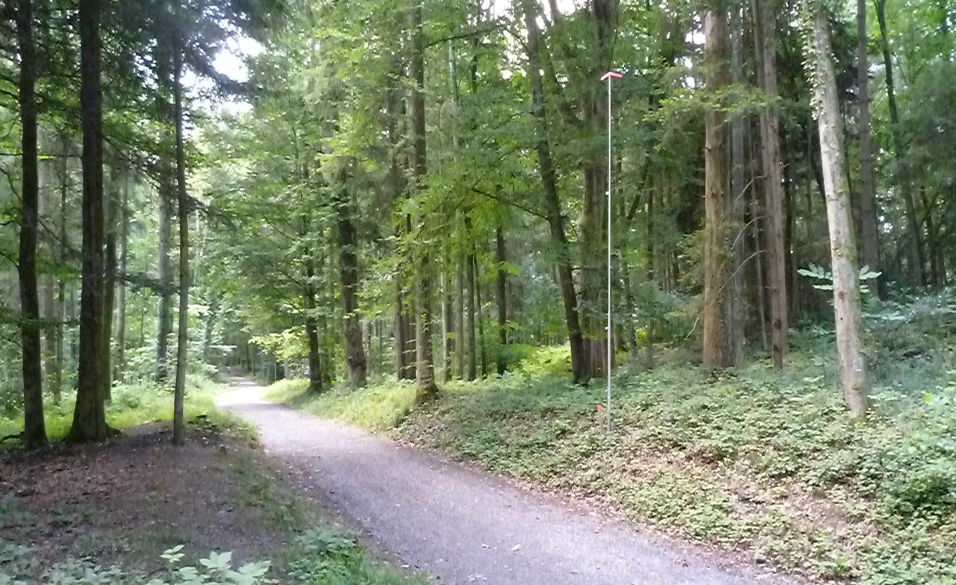 ...steht in Wirklichkeit gemäss Baustangenprofil fünf Meter hoch an der Forststrasse im Gütschwald.