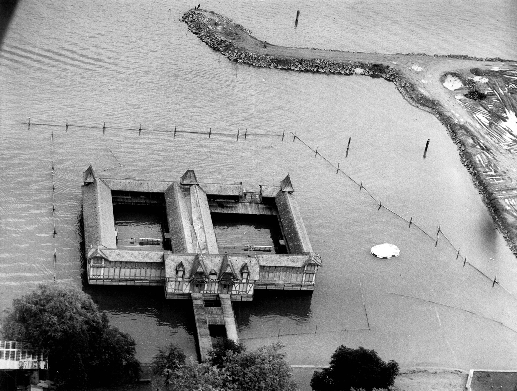 Die Badeanstalt Alpenquai, mit dem Männerbad (gebaut 1903) und dem Frauenbad (1907), in einer Aufnahme von 1971.