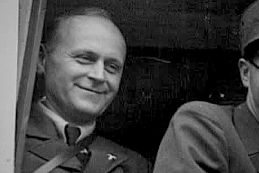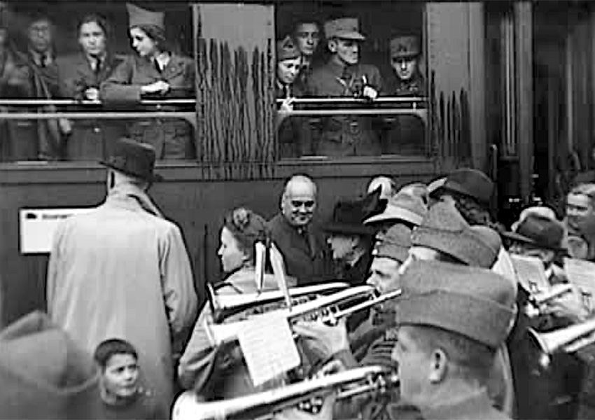Der Luzerner Arzt Rudolf Bucher 1941 bei der Abfahrt in Bern an die deutsche Ostfront. Bilder: Screenshots aus alten Filmbeiträgen (Autoren unbekannt)