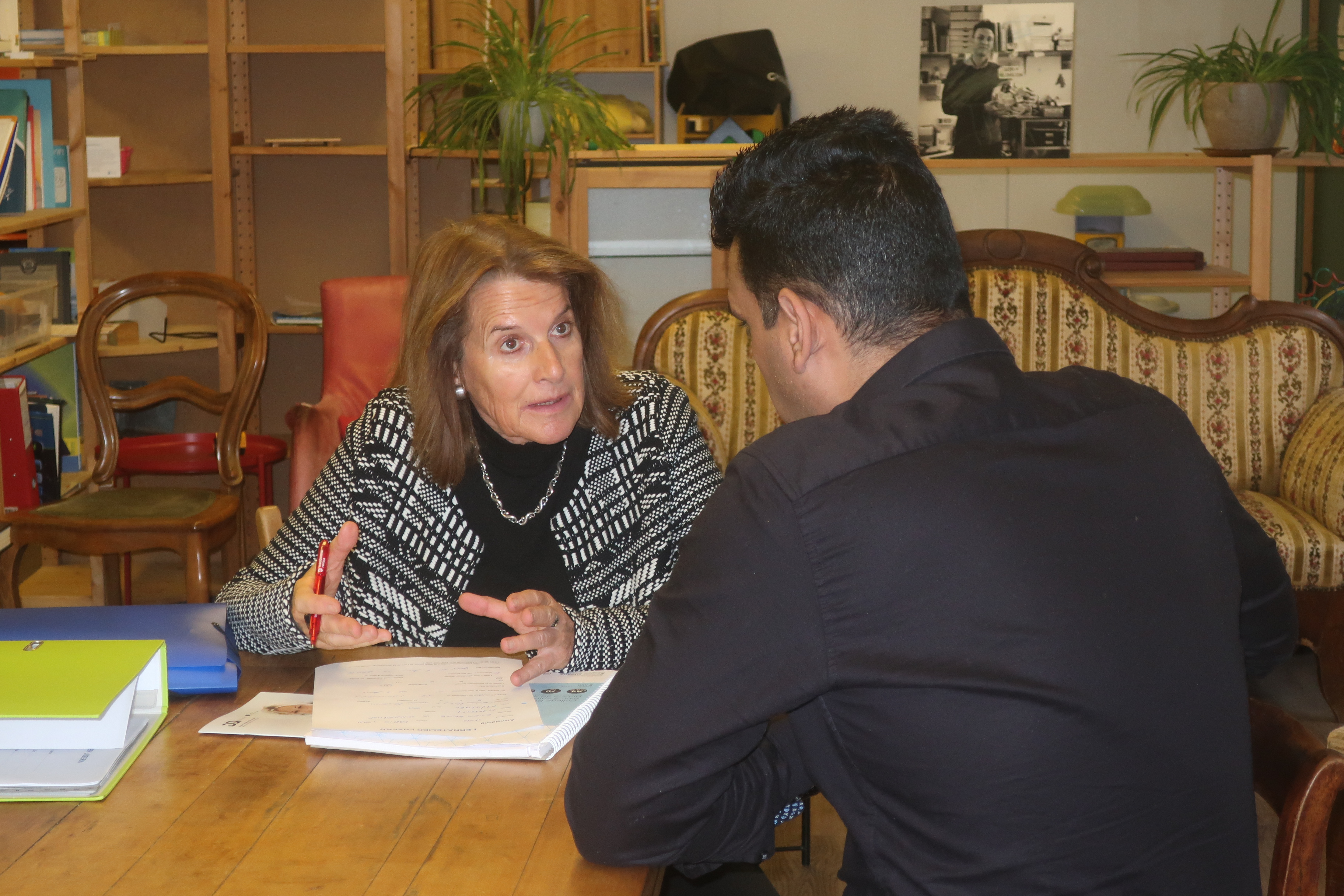 Ursula Flury im Gespräch mit einem Migranten.