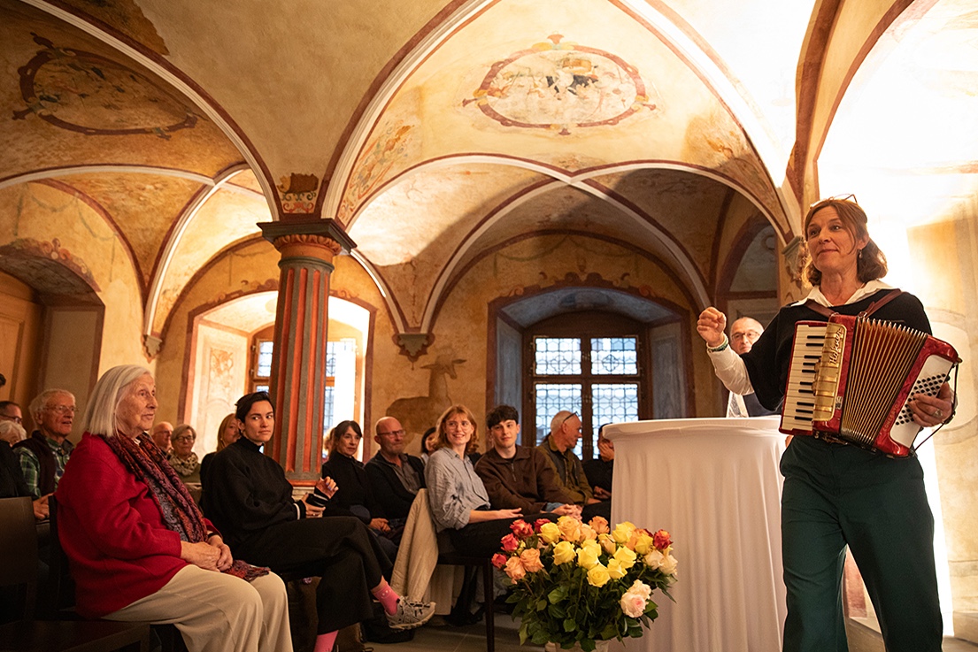 Im Am-Rhyn-Haus in Luzern hiess Mirjam Müller-Bodmer, Präsidentin von Alzheimer Luzern, die Gäste, Betroffene mit ihren Angehörigen und Vertreterinnen und Vertreter verschiedener Organisationen herzlich willkommen. Andrea Kumpe, Leiterin Weiterbildungsprogramm Musikgeragogik an der Hochschule Luzern, freute sich über die Auszeichnung der ehemaligen Studentin Ursula Zihlmann. Sie bezeichnete Musik und Demenz als kraftvolles Duo, könne die Musik doch nach der einschneidenden Diagnose Demenz Erstaunliches leisten: Betroffene spüren sich wieder, lachen – und Angehörige können die betroffenen Menschen für eine kurze Zeit so erleben, wie dies lange nicht mehr möglich war.