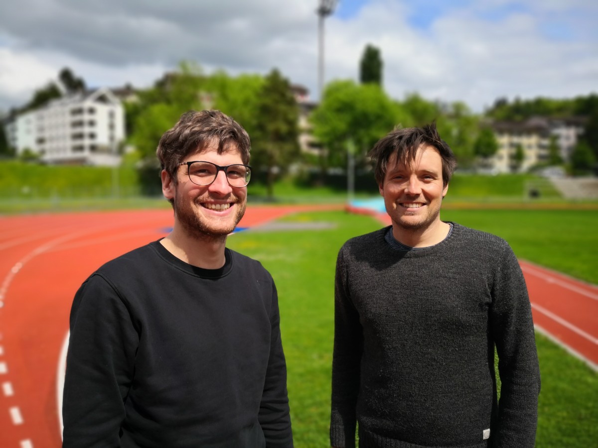 Andriu Cavelti (links) und Jan Fischer, Co-Geschäftsleiter von Sportstadt Luzern, auf der Allmend Luzern. Bild: zvg