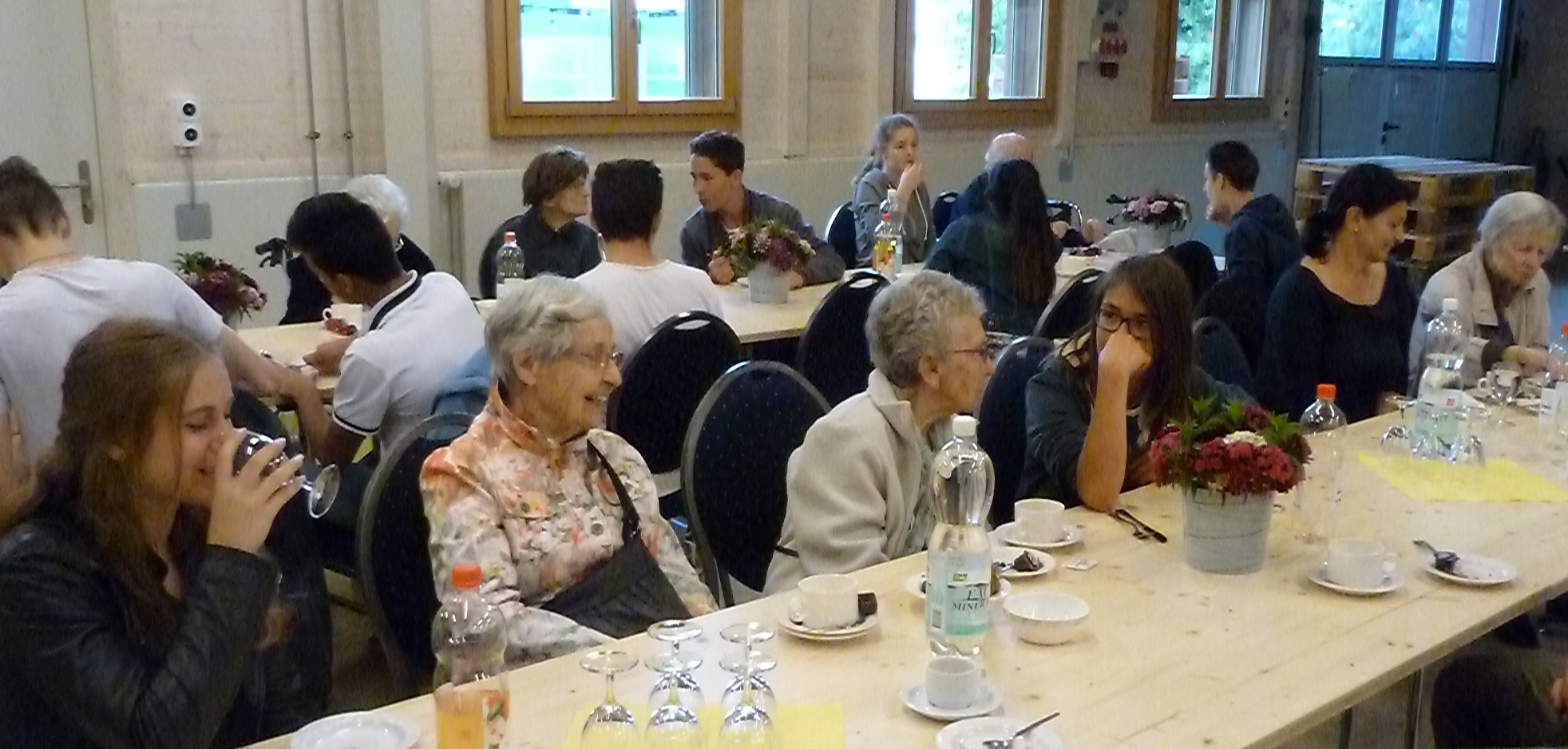 Nach der Abfahrt mit den beiden Cars (rund 30 betagte Frauen und Männer machten den Ausflug mit) begrüsste Doris Fankhauser die Gäste. Sie sind vorher einzeln in ihren Zimmern von den Schülern und Schülerinnen abgeholt worden. Jetzt sitzen sie zu zweit im Bus, fast alle im Gespräch miteinander. „Sind sie verheiratet gewesen“, fragt die Schülerin. „Ja, aber mein Mann ist vor über 30 Jahren gestorben“, sagt Clara Müller, 96jährig. Sie weiss viel zu berichten und wird von ihrer jungen Begleiterin immer wieder auf natürliche Art und Weise herausgefordert, zu erzählen. Ihr Mann hat die Migros-Klubschule Luzern gegründet, sagt sie nicht ohne Stolz. „Und wissen sie, ich bin halt ein Migros-Fan.“