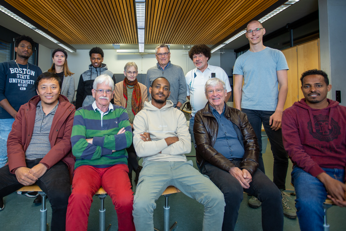 Bunte Gruppe: Lehrpersonen und Lernende, Geflüchtete und Schweizer, Alt und Jung.