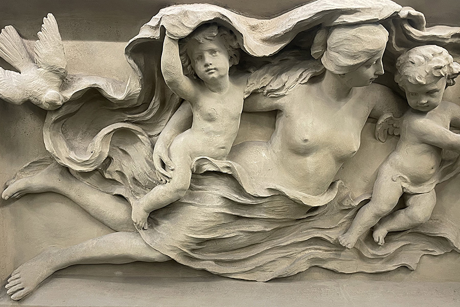 Dieses Werk von Josef Vetter – früher war es Fassadenschmuck – ist in einem Treppenhaus untergebracht. Bild: Karl Bühlmann