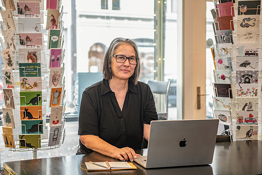 Dank eines guten Netzwerks gab es immer kleinere und grössere Aufträge für grafische Arbeiten. «Wir lebten zeitweise von der Hand in den Mund, aber wir konnten unsere Träume ausleben.» Ein weiterer Traum erfüllte sich, als sie an der Bruchstrasse das kleine Ladenlokal mieten konnte, das auch ihr Atelier wurde. Dort verkauft sie jetzt viele schöne Sächeli und Schächteli, selbst gestaltete Postkarten, mit grafischen Mustern versehene Papiere, Schlüsselanhänger und viele weitere Geschenkartikel.