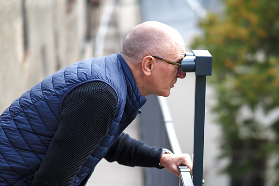 Teil des neuen Kulturabenteuers Museggmauer: Jürg Manser schaut durch einen Gucker auf die Stadt Luzern von 1450 zurück.
