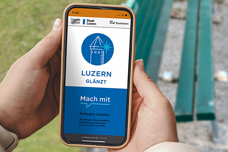Entstehen Schäden auf Strassen, an Gebäude oder anderswo, werden sie meist zuerst von den Mitarbeiterinnen und Mitarbeitern der Stadt entdeckt und behoben. Es gibt aber auch Schäden, die zuerst von Bewohnerinnen und Bewohnern entdeckt werden. Damit auch diese Schäden schnell behoben werden können, lanciert Luzern ein neues, einfaches Onlinetool. Auf der von der Stadt initiierten Partizipationsplattform «Dialog Luzern» können Mängel an der Infrastruktur der Stadt Luzern unkompliziert gemeldet werden. Nach einmaliger Registrierung kann man auf www.dialogluzern.ch/schadenmelden die entsprechende Schadenkategorie auswählen und den Standort sowie das Ausmass des Schadens angeben. Auch Fotos können hochgeladen werden.
