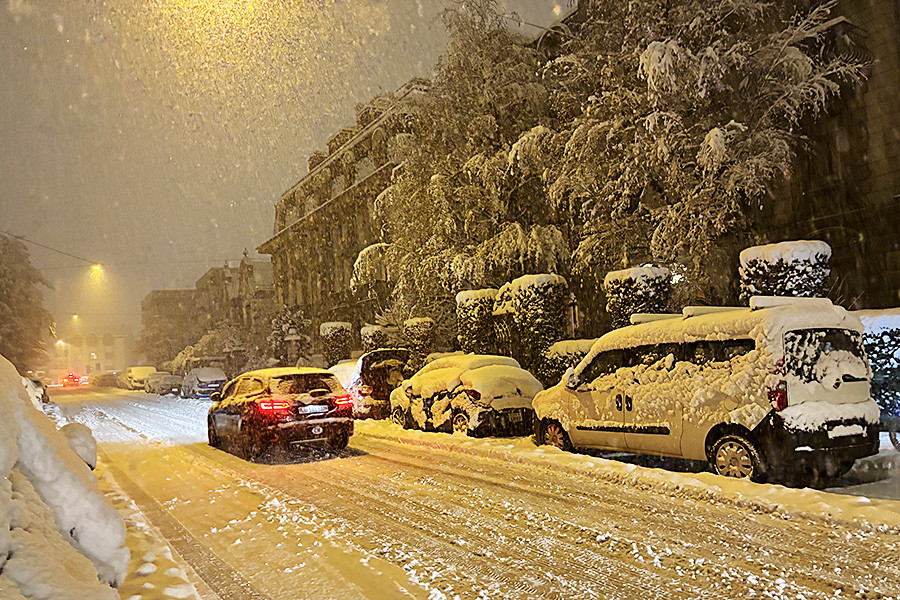 Am nächsten Morgen lagen denn auch 42 cm Neuschnee auf dem Fenstersims. Die Schneepflüge ratterten unter Kettengerassel durchs Quartier, hohe Schneewälle säumten die Trottoirs, die es fürs Fussvolk zu erklettern galt, wollte es die Strasse überqueren. Die draussen eingeparkten Autos warteten darauf, freigeschaufelt zu werden. Auch dasjenige meiner Freundin.