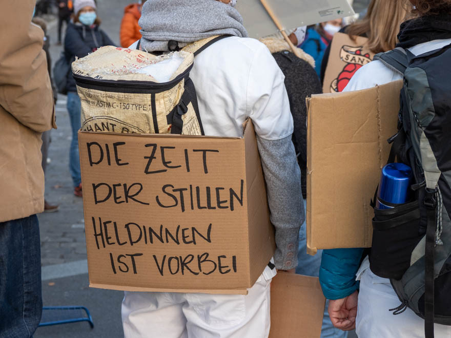 Pfleger und Pflegerinnen demonstrieren für die Pflegeinitiative.