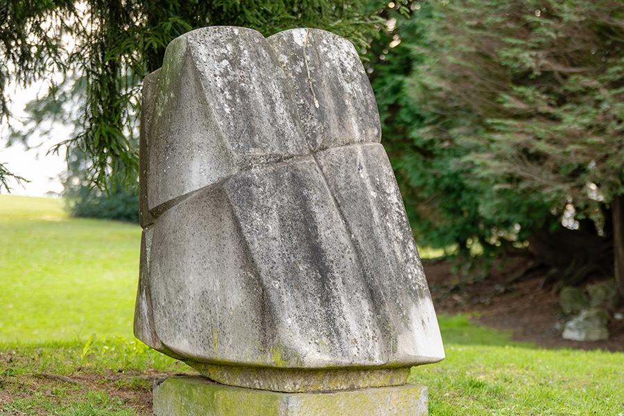 Bevor der Flaneur das Pförtnerhaus erreicht, erblickt er das würfelartige Steinobjekt, das am Konsifest 1992 dort platziert wurde. Geschaffen hat es Katharina Sallenbach (1920–2013), Ehefrau von Rudolf Baumgartner, der 27 Jahre lang Direktor des Konservatoriums war. Auch hier steckt kein Täfelchen mit Information vor dem Werk.