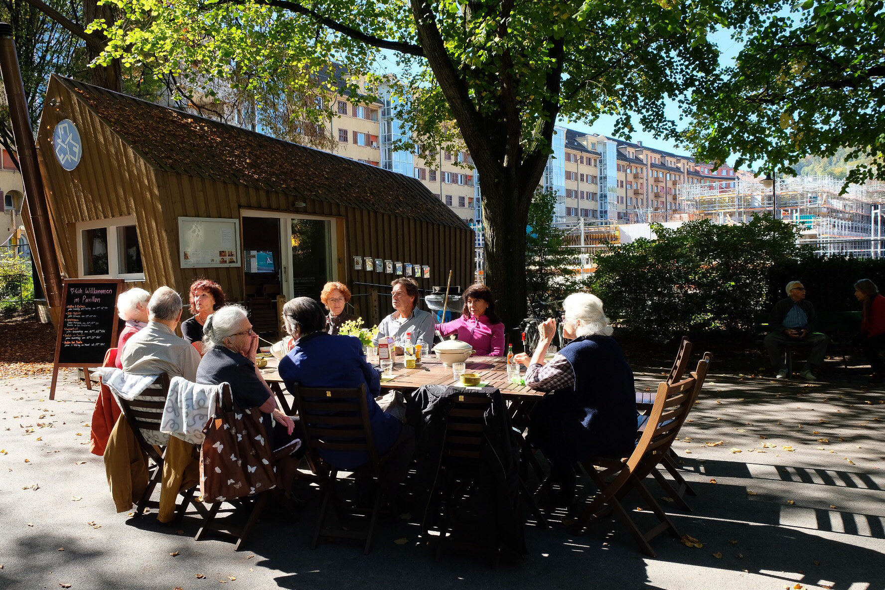 Gemeinsam am Suppentopf - vor dem Pavillon im Bleichergärtli.