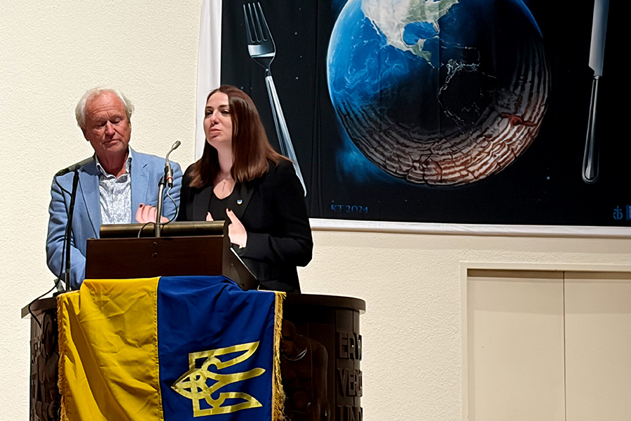 Auch der ehemalige Regierungsrat Paul Winiker, Präsident der Ukrainehilfe Zentralschweiz, war beeindruckte vom Mut und der Kraft der Musikerinnen und Musiker aus der zerstörten Stadt Bachmut. Seine Worte wurden übersetzt von der aus Mariupol stammenden Yuliia Buialska, die Prostir mitaufgebaut hatte.