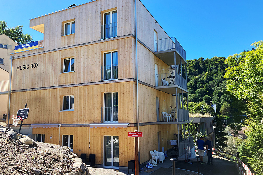 Die beiden Häuser sind mit Eigenmitteln, Hypotheken und Privatdarlehen komplett privat finanziert. Es war gut zu erfahren, dass begüterte Menschen Geld für sinnvolle Projekte geben, ohne eine maximale Rendite zu bekommen. Auch die zwei involvierten Banken gingen das Risiko ein, da kaum mehr jemand an die auf diesem Grundstück geplante Spange Nord glaubt. Diese schönen Erfahrungen haben mich motiviert, mit diesem Bausystem in wirtschaftlich gut erschlossenen Gebieten in der Ukraine Wohnraum zu schaffen für Binnenflüchtlinge, die alles verloren haben und im Land oder im Ausland leben. Mit einer Gruppe der Exilverwaltung von Mariupol sowie Schweizer Politikern und Wirtschaftsleuten erarbeiten wir ein entsprechendes Projekt. Zwei Ingenieure von Holzbaufirmen arbeiten aktuell an einem Modell mit Musterbauten gemäss der Music Box.