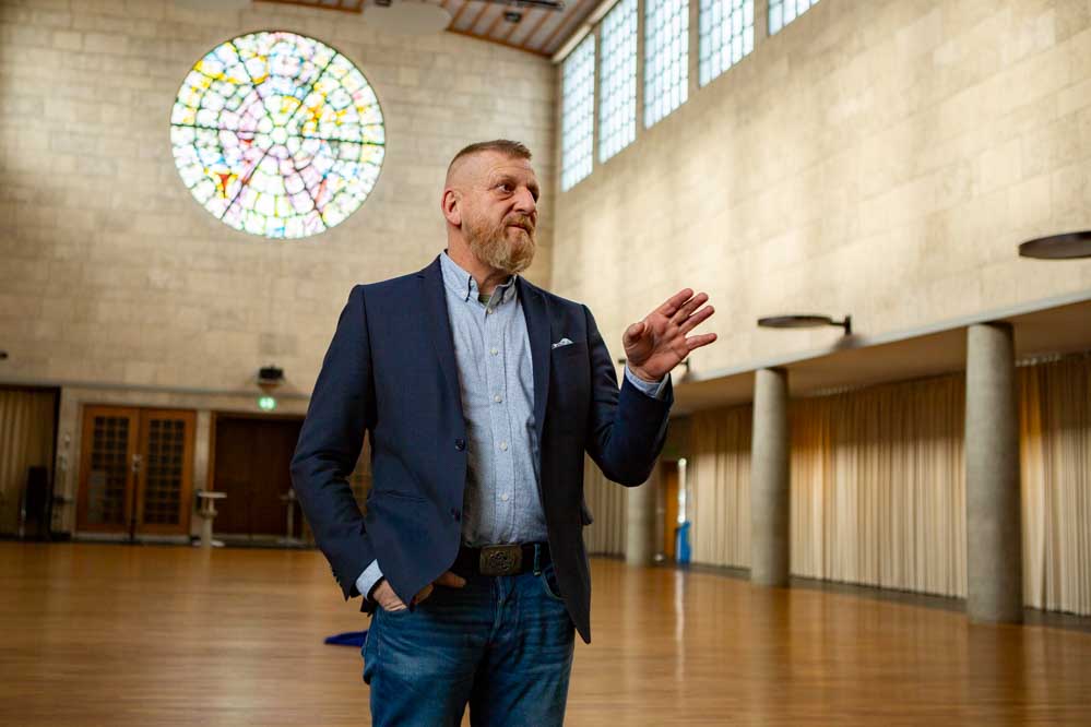An diesem Vormittag ist der Kirchensaal leer. «Der MaiHof», wie das Pfarreizentrum seit dem Umbau von 2013 heisst, entspricht nicht dem gängigen Bild einer Kirche. Keine festgeschraubten Sitzreihen, keine Kniebänke, kein barocker Ballast, der den Menschen demütig macht. Für den Fotografen rückt Franz Zemp sein Jacket zurecht, die rechte Hand steckt in der Hosentasche seiner Jeans. Zemp ist kein Pfarrherr mit steifem Kragen und schwarzer Schale. Und auch kein Mann der frommen Sprüche. Er ist bodenständig, unkompliziert, menschennah. Vorne an der Kirchenwand hängt ein hölzernes, gleichschenkliges Kreuz und ganz bewusst kein Kruzifix mit dem sterbenden Jesus. «Ich finde es schrecklich, sich einen Toten an die Wand zu hängen, das ist doch eine Verherrlichung des Leides.» Er hat es eher mit den Engeln.
