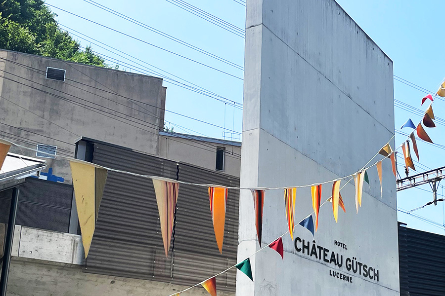 Auf der anderen Seite der Unterführung ist die Talstation des Schrägliftes, der zum Hotel Château Gütsch führt, nicht zu übersehen. 2015 hat die Bahn eine neue Empfangshalle bekommen. Gemäss der dafür verantwortlichen Luzerner Architektengemeinschaft M & B soll sie nicht als Gebäude, sondern als Betonskulptur verstanden werden. Für den Flaneur versprüht sie den Charme einer U-Bahnstation am Prenzlauerberg in Berlin, ist löblicherweise jedoch viel sauberer. Der Warteraum ist nüchtern, ohne einladende Informationen, der Flaneur wird von japanischen Touristen gefragt, wie das mit dem Ticketing funktioniert.
