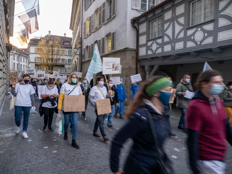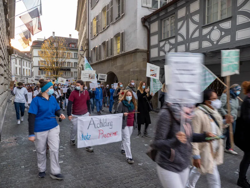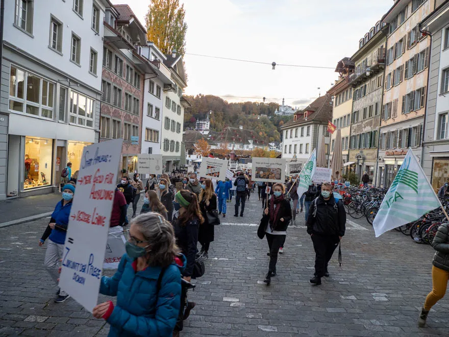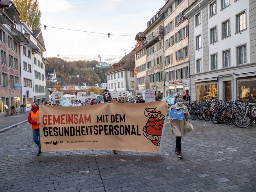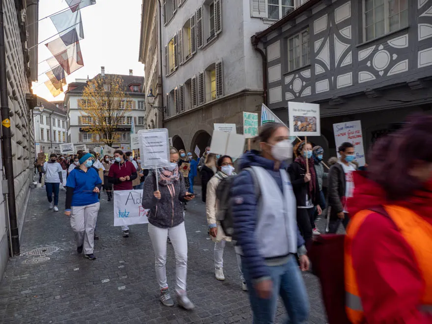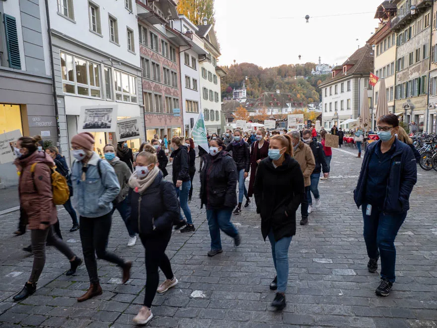 Im Rahmen der vom Bündnis Gesundheitsberufe organisierten Protestwoche fand in Luzern am 27. Oktober der zweite «walk of care» statt. Wir zeigen die Bilder. Von Monika Fischer (Text) und Joseph Schmidiger (Bilder)