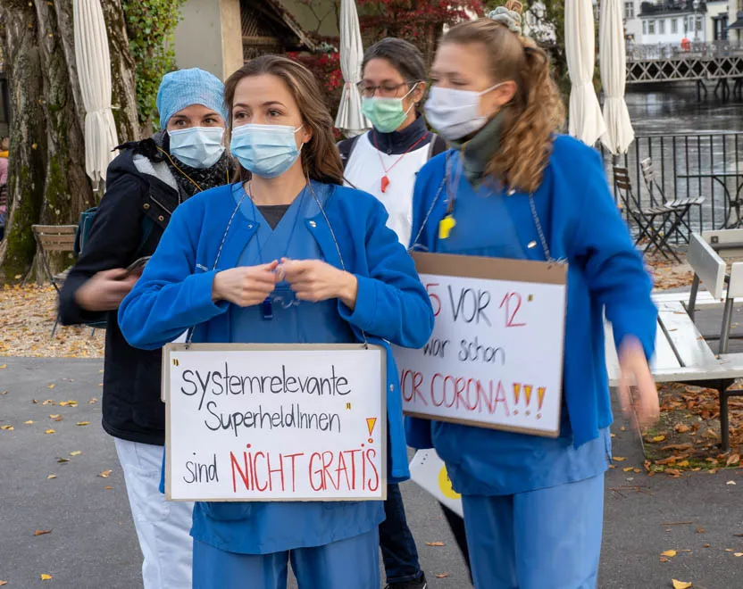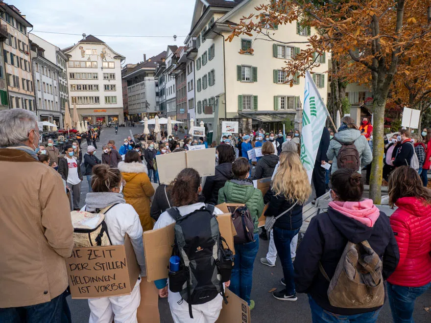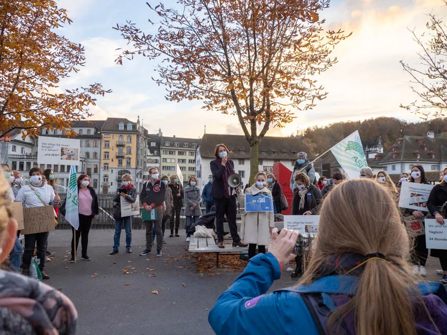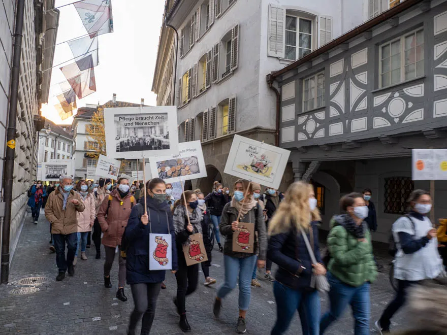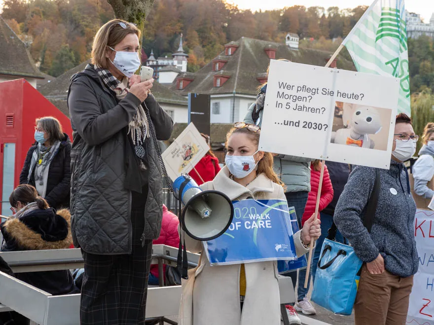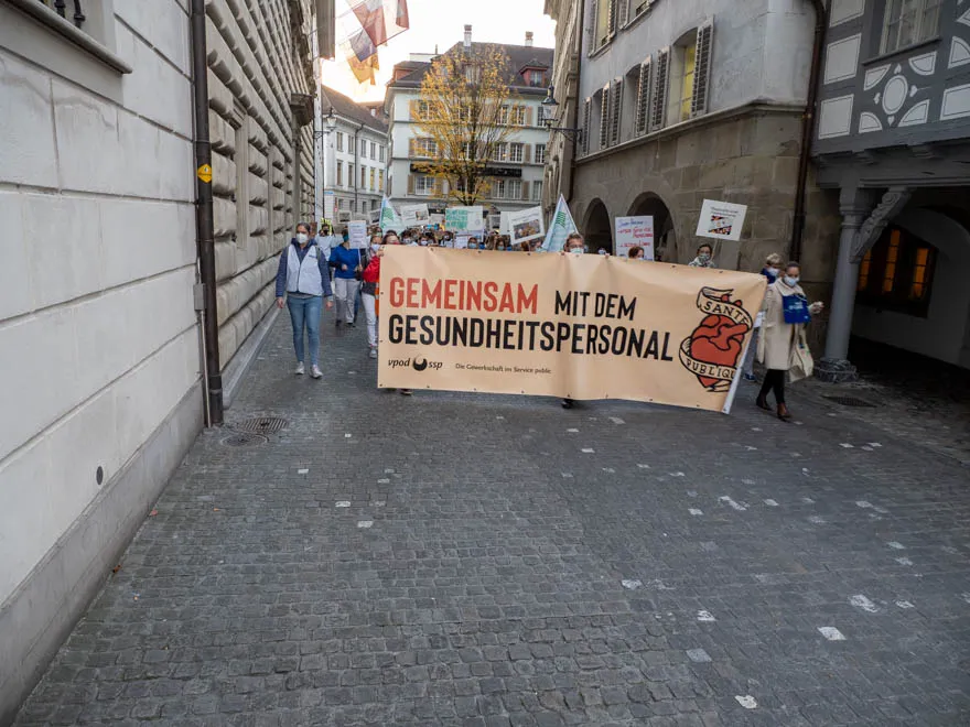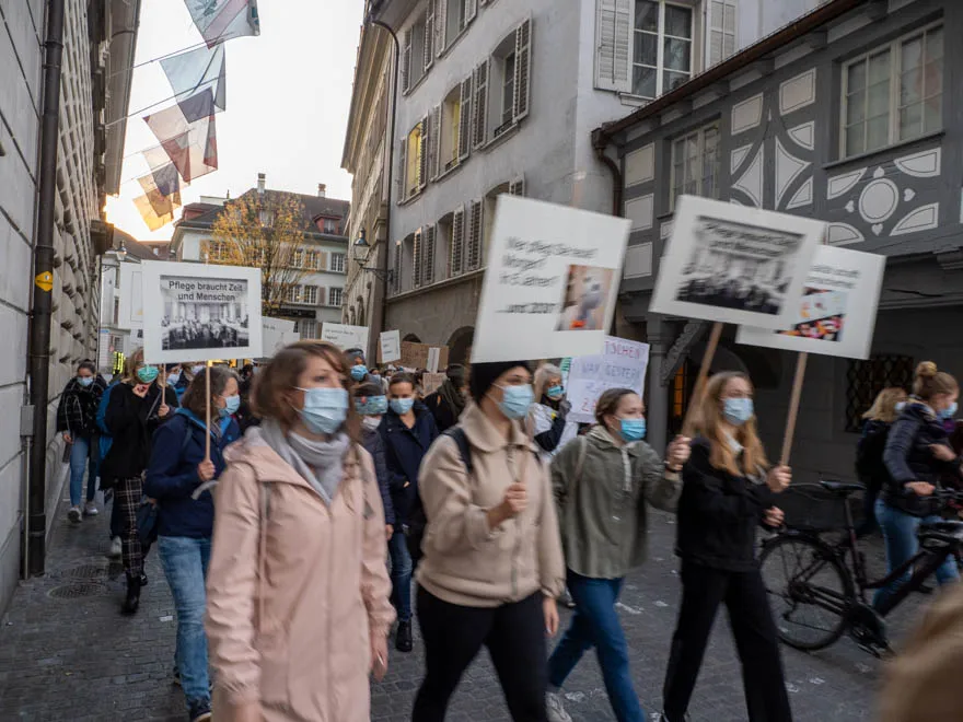 Im Rahmen der vom Bündnis Gesundheitsberufe organisierten Protestwoche fand in Luzern am 27. Oktober der zweite «walk of care» statt. Wir zeigen die Bilder. Von Monika Fischer (Text) und Joseph Schmidiger (Bilder)
