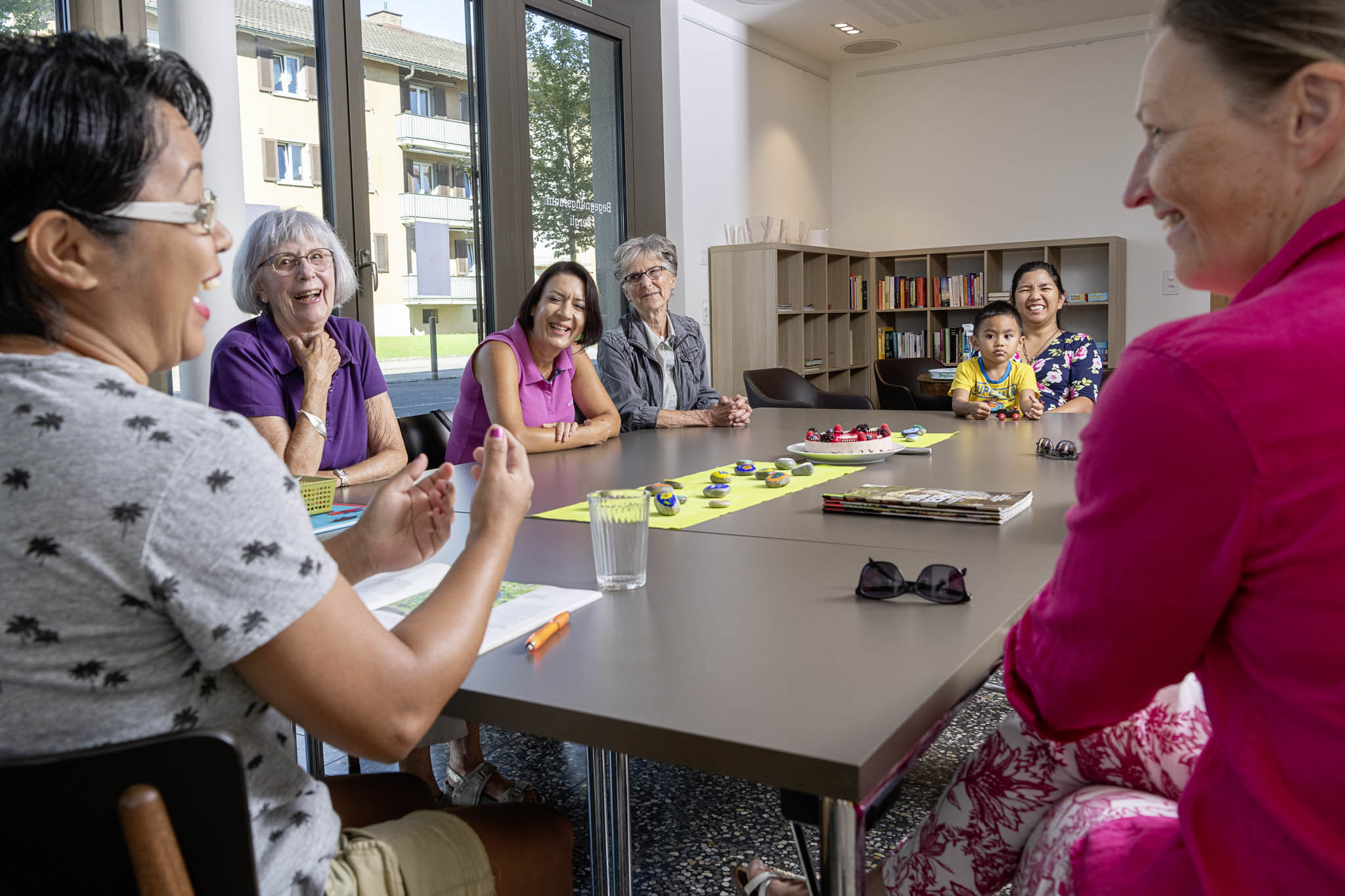 Im Deutschkonversationskurs im Gemeinschaftsraum entwickeln sich neben Sprachkompetenzen auch Beziehungen zwischen den Generationen.