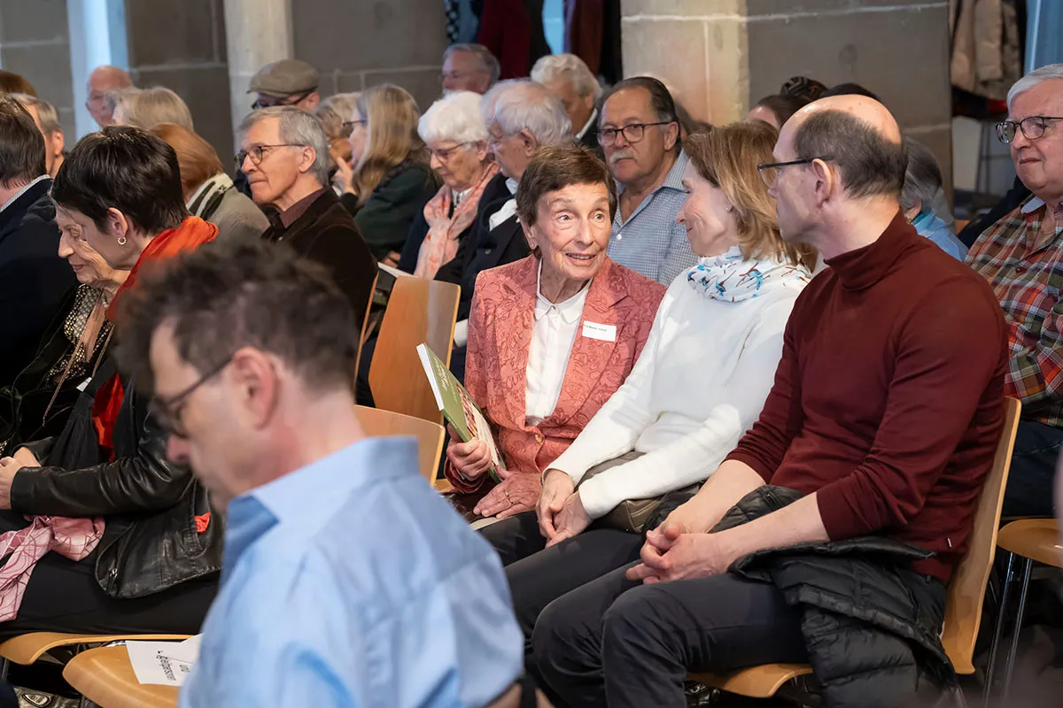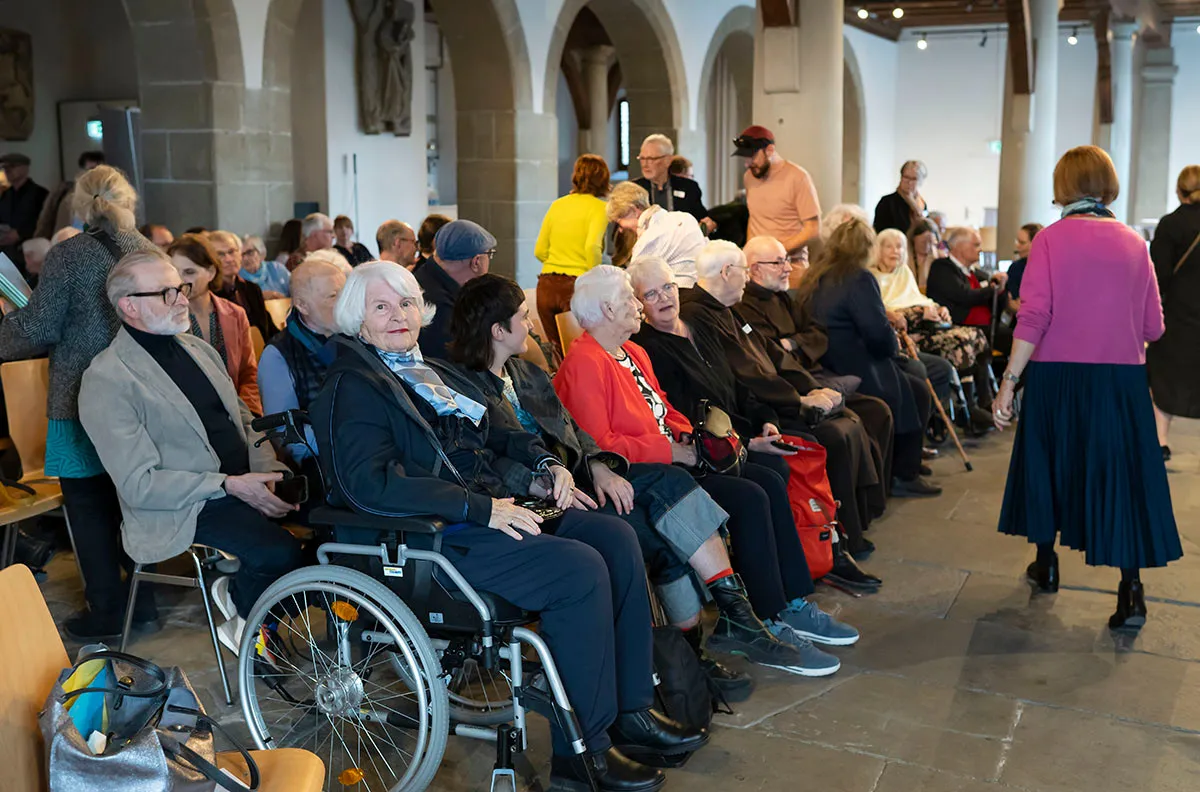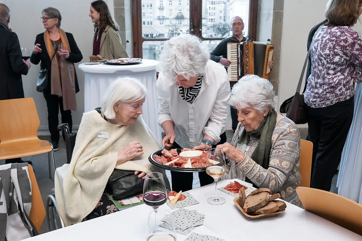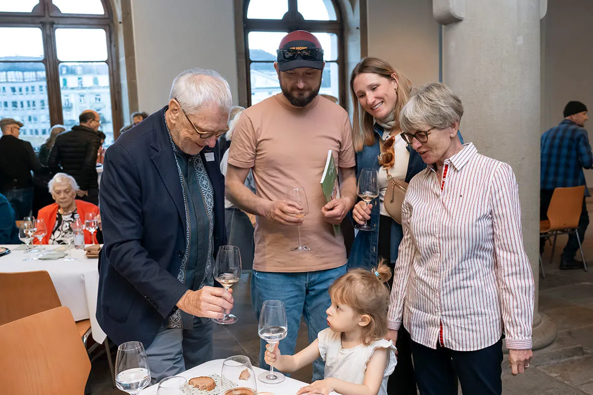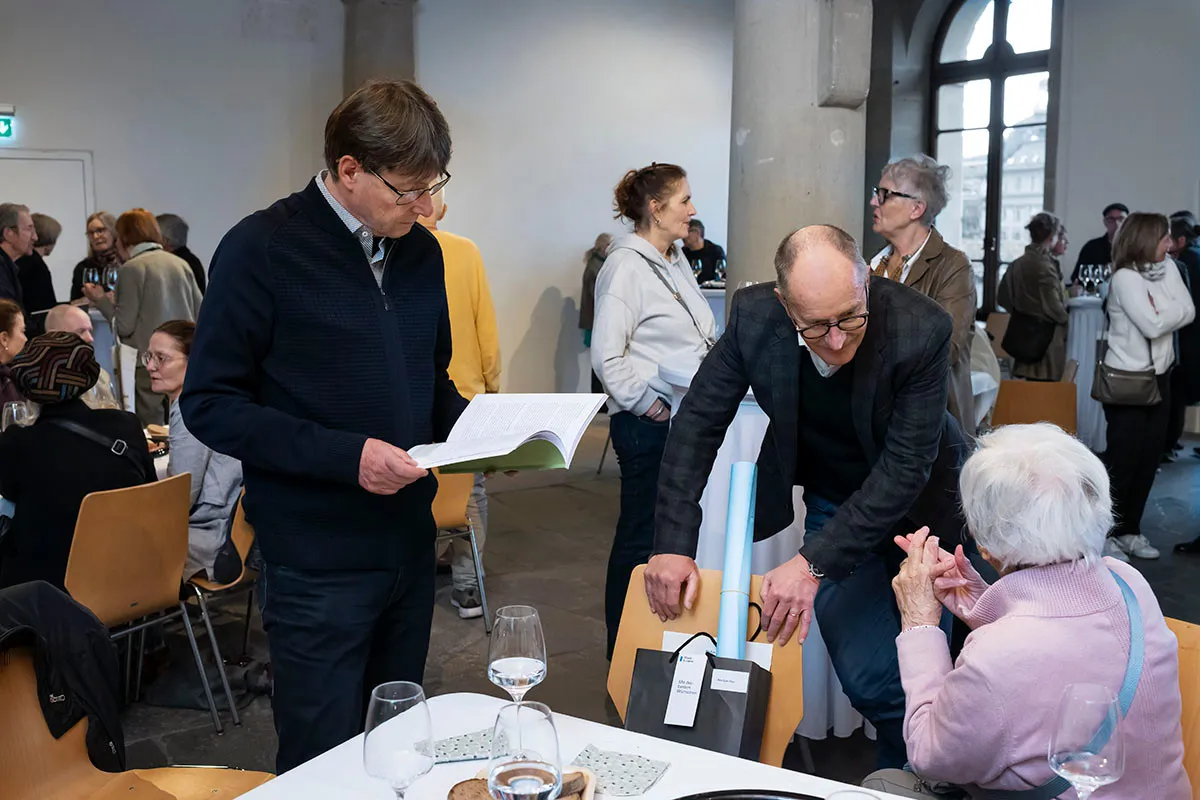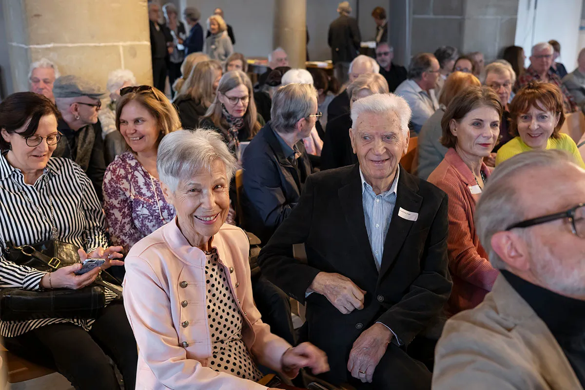 Die 24 in einem Buch und auf Plakaten porträtierten Luzernerinnen und Luzerner zwischen 82 und 97 Jahren trafen sich am Sonntag, 23. März 2025, in der Kornschütte Luzern zur Vernissage. Den Start der Sensibilisierungskampagne «Das hohe Alter» feierten mit ihnen Angehörige, Autor:innen und Promotor:innen des Forum-Luzern60plus-Projekts. Nach den Ansprachen, der Vorstellung der Porträtierten und der Verteilung des Buchs gings über zum festlichen Apéro.