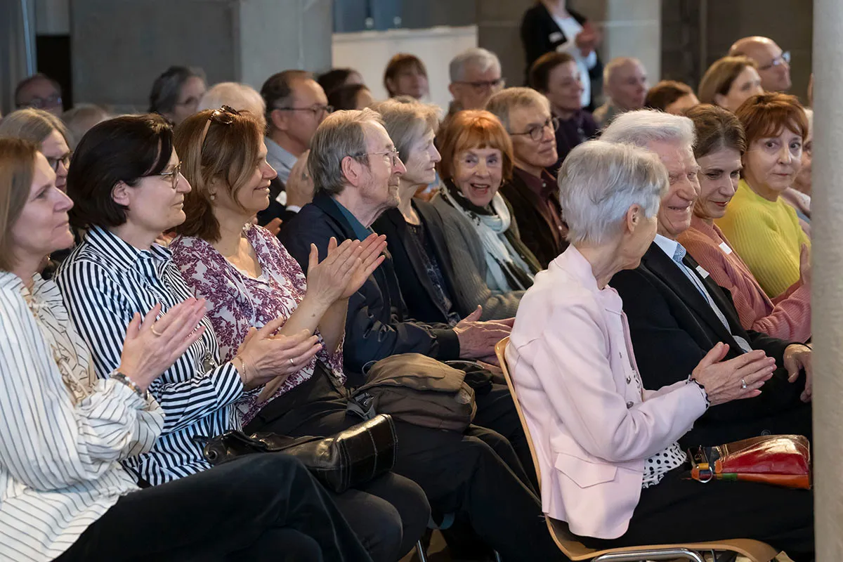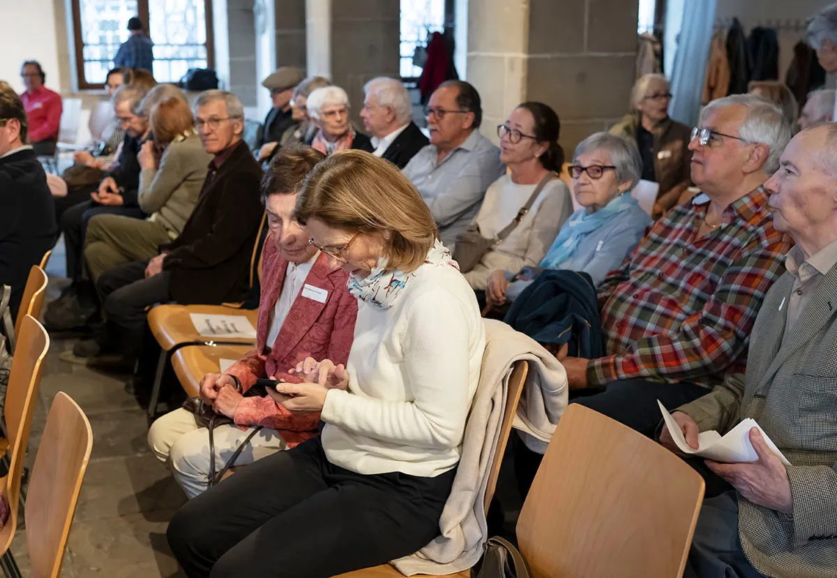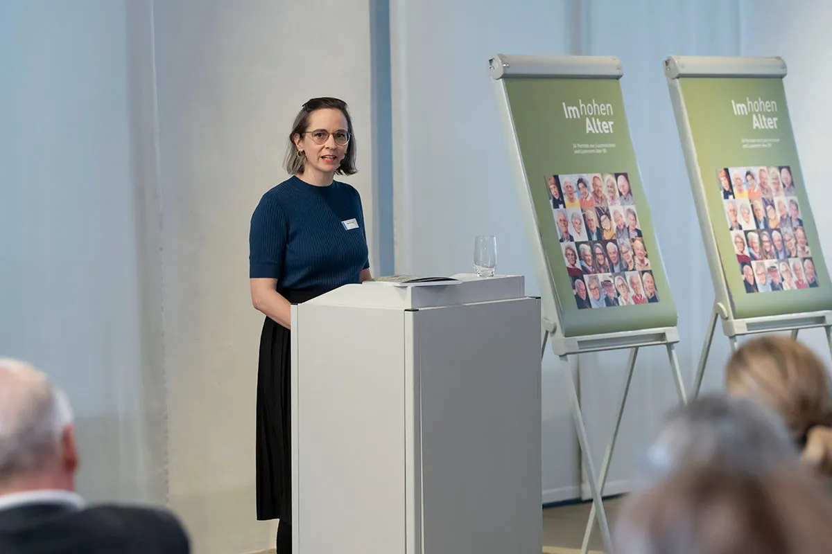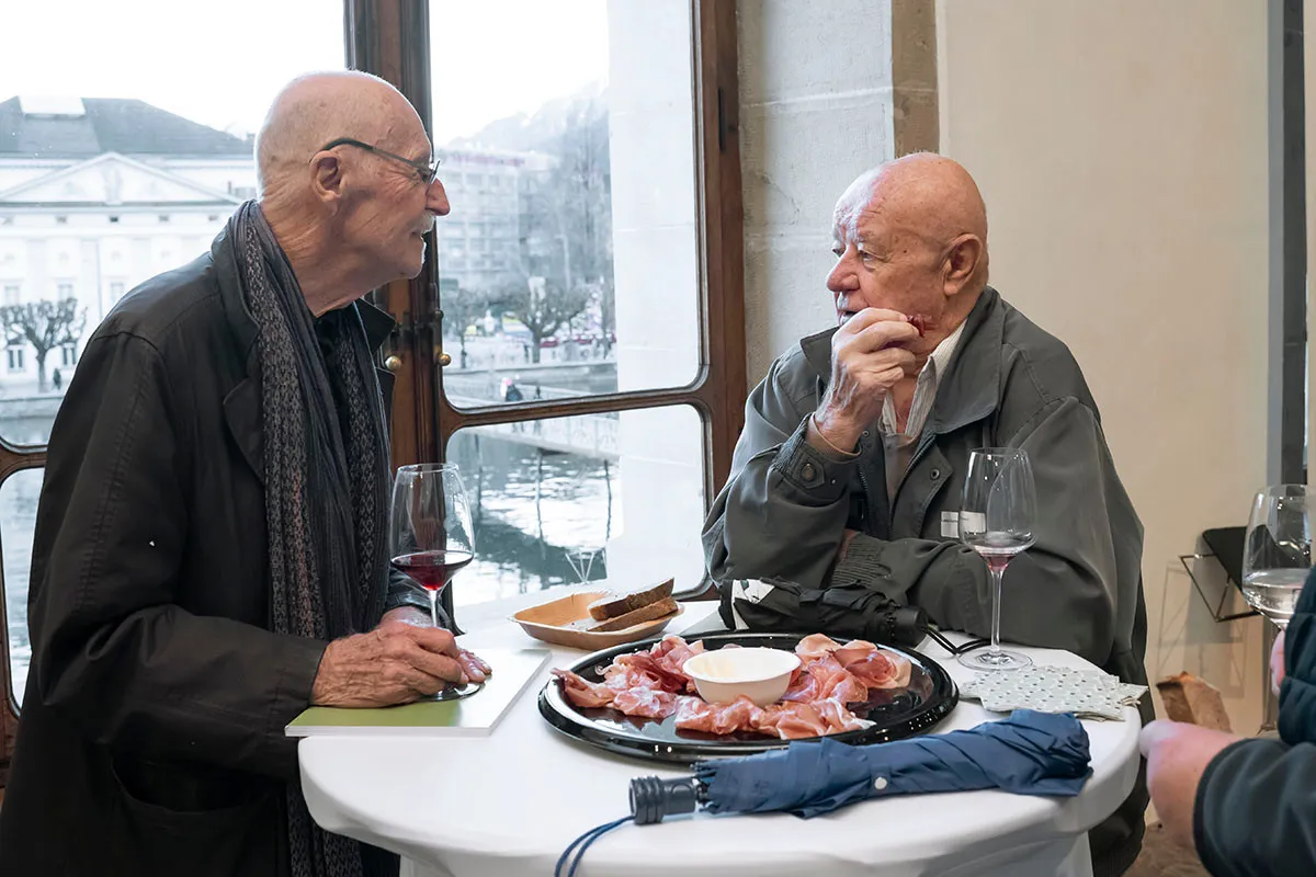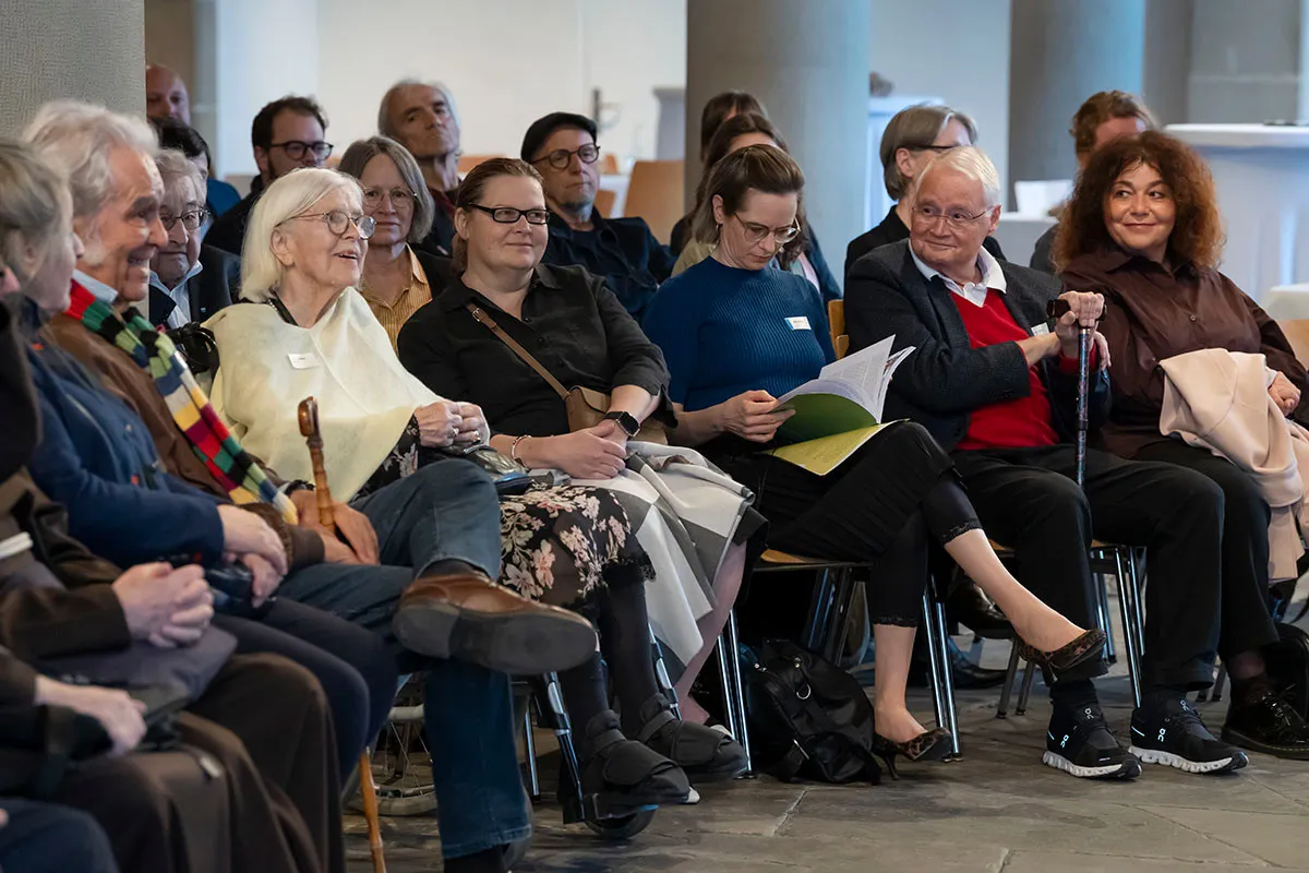 Die 24 in einem Buch und auf Plakaten porträtierten Luzernerinnen und Luzerner zwischen 82 und 97 Jahren trafen sich am Sonntag, 23. März 2025, in der Kornschütte Luzern zur Vernissage. Den Start der Sensibilisierungskampagne «Das hohe Alter» feierten mit ihnen Angehörige, Autor:innen und Promotor:innen des Forum-Luzern60plus-Projekts. Nach den Ansprachen, der Vorstellung der Porträtierten und der Verteilung des Buchs gings über zum festlichen Apéro.