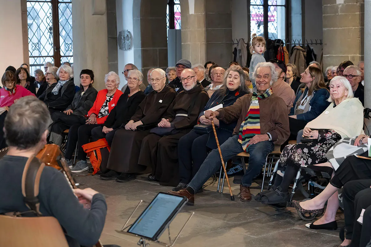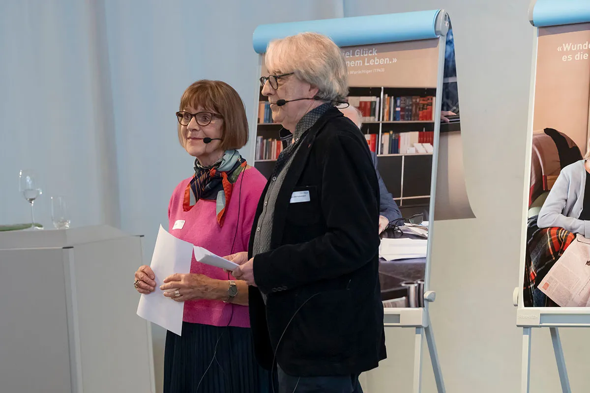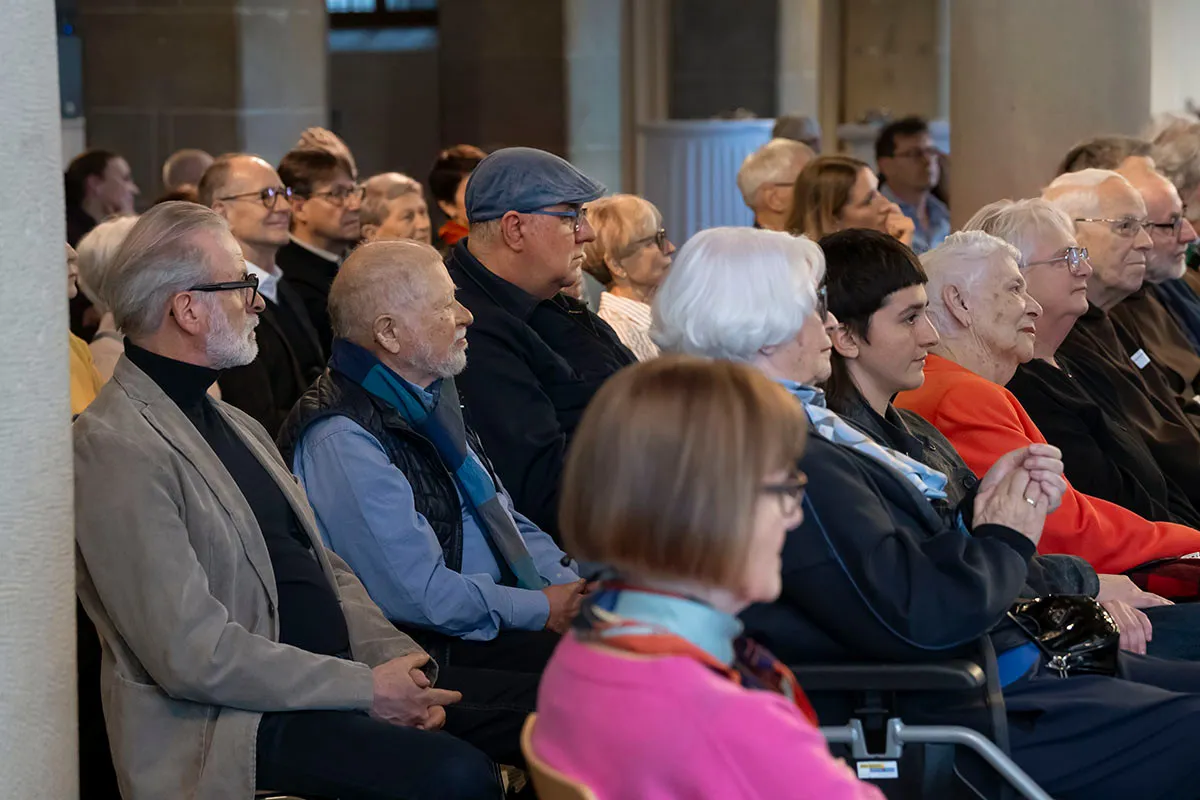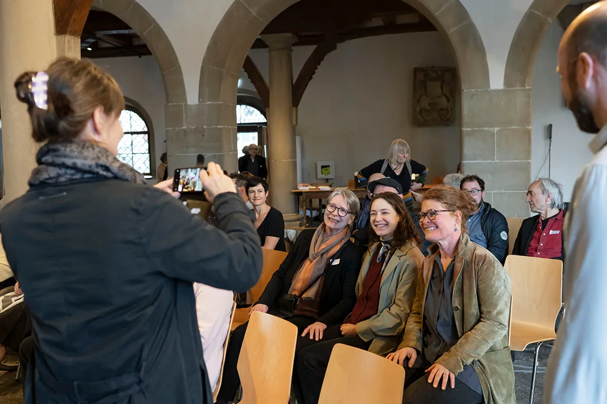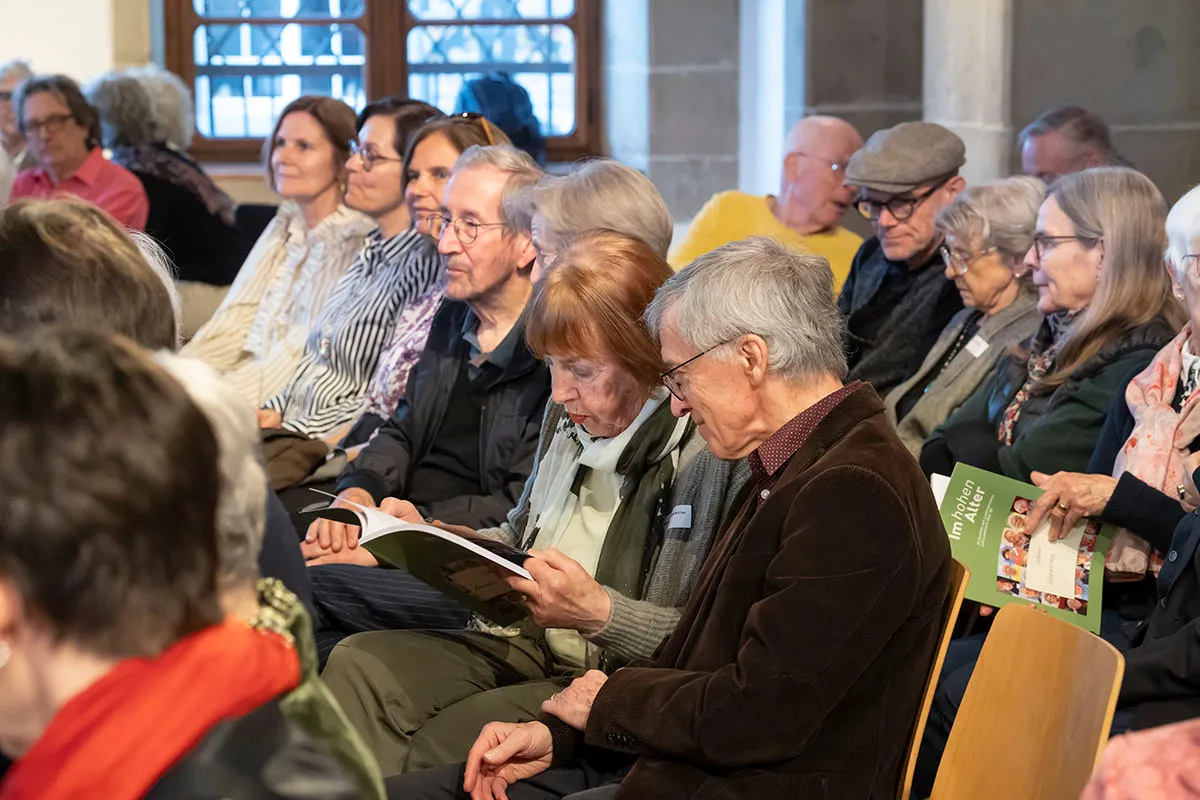 Die 24 in einem Buch und auf Plakaten porträtierten Luzernerinnen und Luzerner zwischen 82 und 97 Jahren trafen sich am Sonntag, 23. März 2025, in der Kornschütte Luzern zur Vernissage. Den Start der Sensibilisierungskampagne «Das hohe Alter» feierten mit ihnen Angehörige, Autor:innen und Promotor:innen des Forum-Luzern60plus-Projekts. Nach den Ansprachen, der Vorstellung der Porträtierten und der Verteilung des Buchs gings über zum festlichen Apéro.
